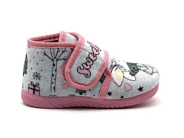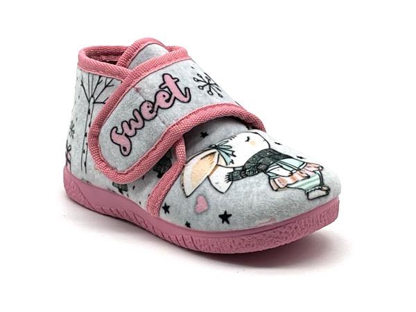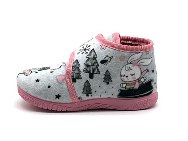Zapatilla Conejitos niñ@ bota velcro gris rosa 19/28 Piso flex