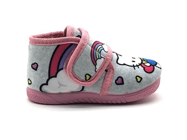 Zapatilla Kitty niñ@ bota velcro gris rosa 19/28 Piso flex