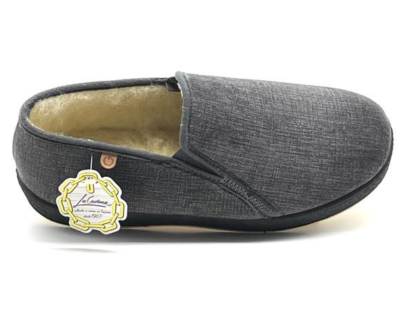 Zapatilla cerrada suatex elásticos gris 39/45 Piso flex 2cm,forro pura lana virgen