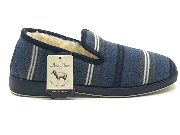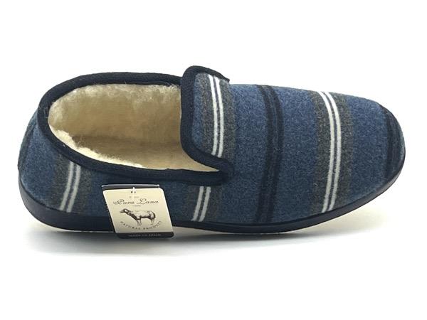Zapatilla confortable rayas marino 39/46 Piso flex forro pura lana virgen