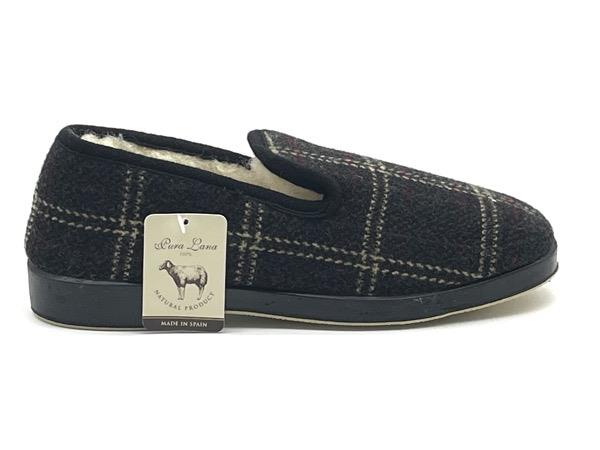 Zapatilla hombre paño cuadros gris 39/46 Cuadro tradicional forro pura lana virgen