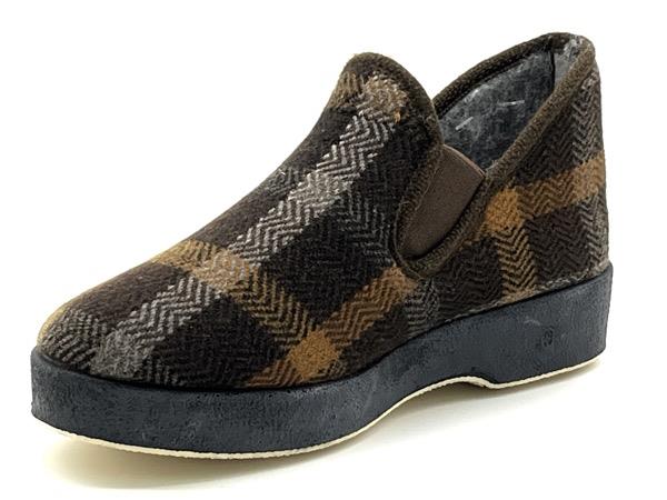 Zapatilla bota elásticos paño cuadros marrón 40/45 Piso flex 2.5cm
