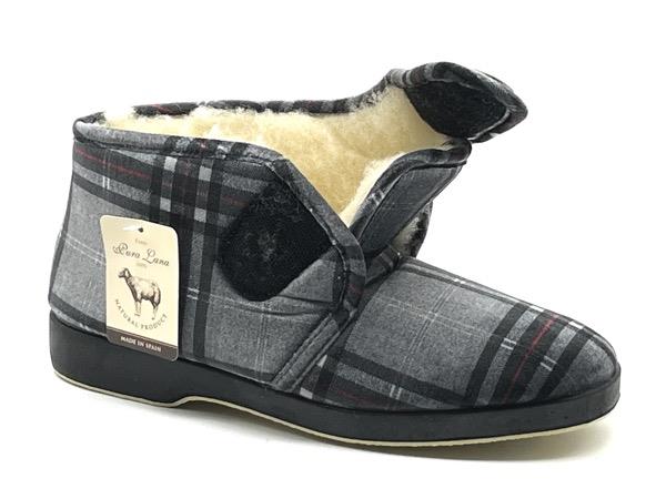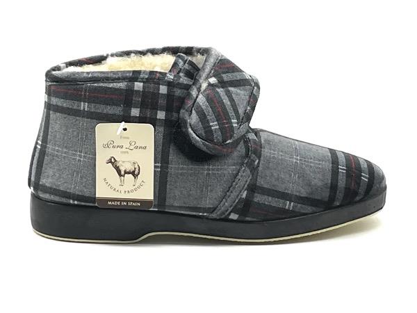 Zapatilla bota velcro cuadros terciopelo suapel gris 39/46 Piso flex forro pura lana virgen