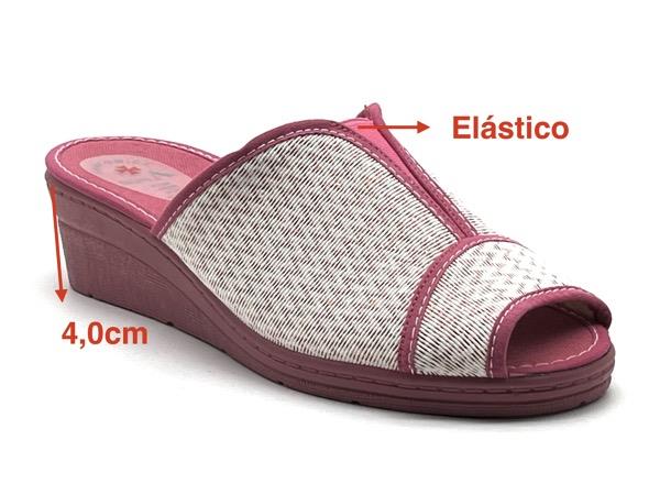 Zapatilla Descalza abierta espiga elástico cereza 35/41 Anatómica-cuña 4,0cm