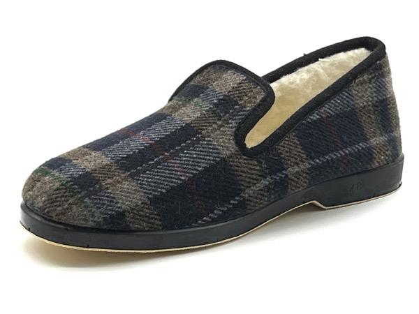 Zapatilla cerrada paño cuadros marino 46/49 Piso flex,forro pura lana virgen