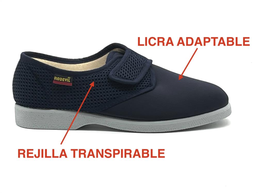 Zapatilla Licra velcro anatómica marino 39/46 Ancho especial adaptable
