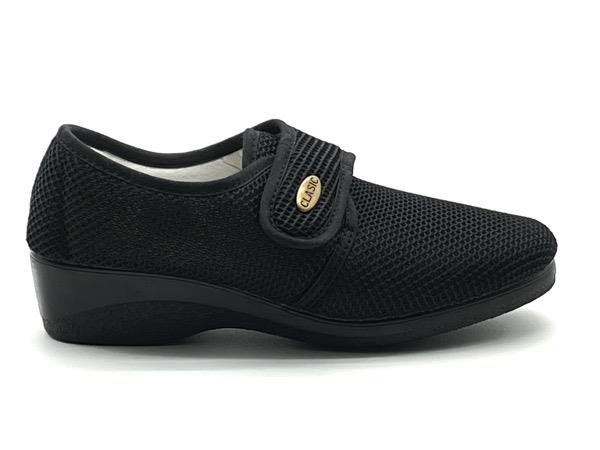 Zapatilla velcro rejilla negro 35/41 Piso cuña 4.0CM