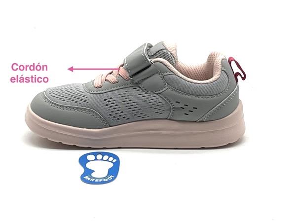 Deportivo niñ@ Barefoot gris rosa 21/27 Casual moda Cordón elástico