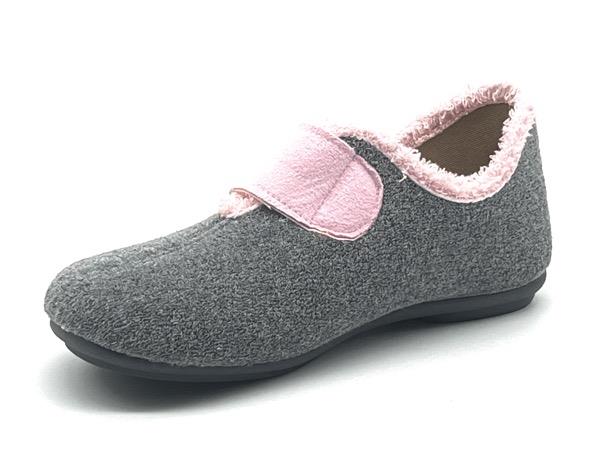 Zapatilla Yuki cerrada velcro rizo gris rosa 35/41 Anatómica piso Flex