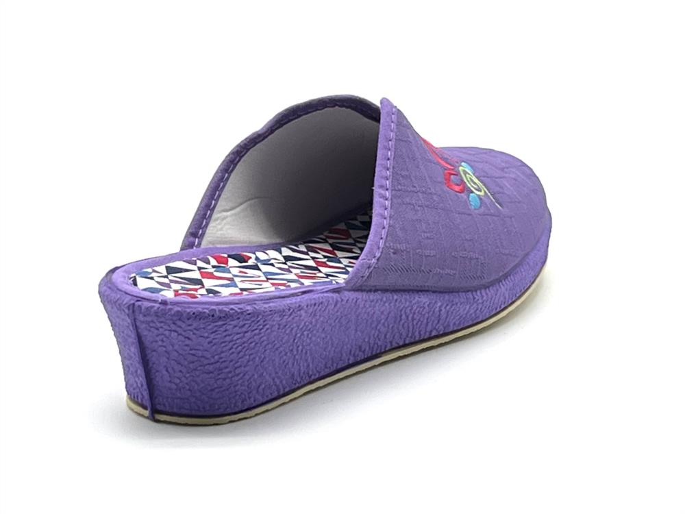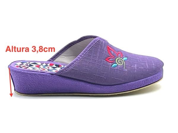 Zapatilla descalza cuña bordado algodón malva 35/41 Anatómica cuña 3.8cm