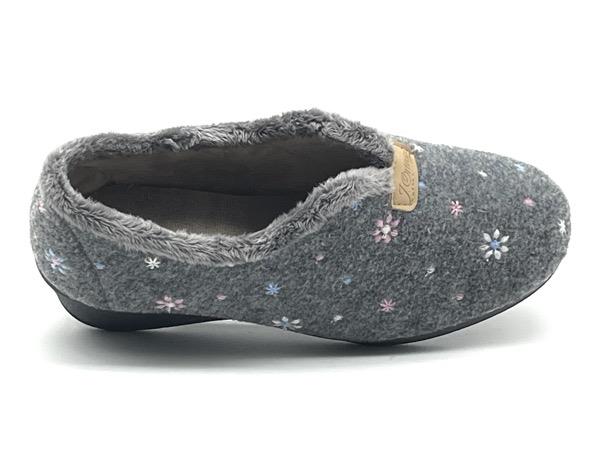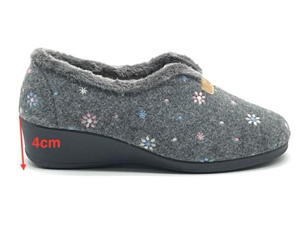 Zapatilla Salón apertura Paño flores gris 35/41 Anatómica-cuña alta 4,00cm