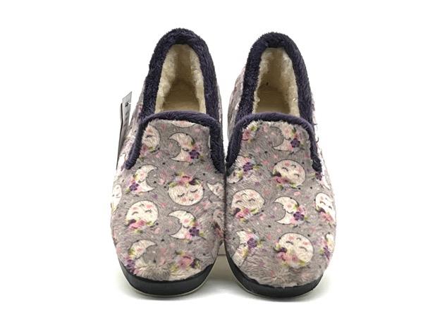 Zapatilla Confortable estampado luna morado 35/41 Piso flex forro pura lana virgen