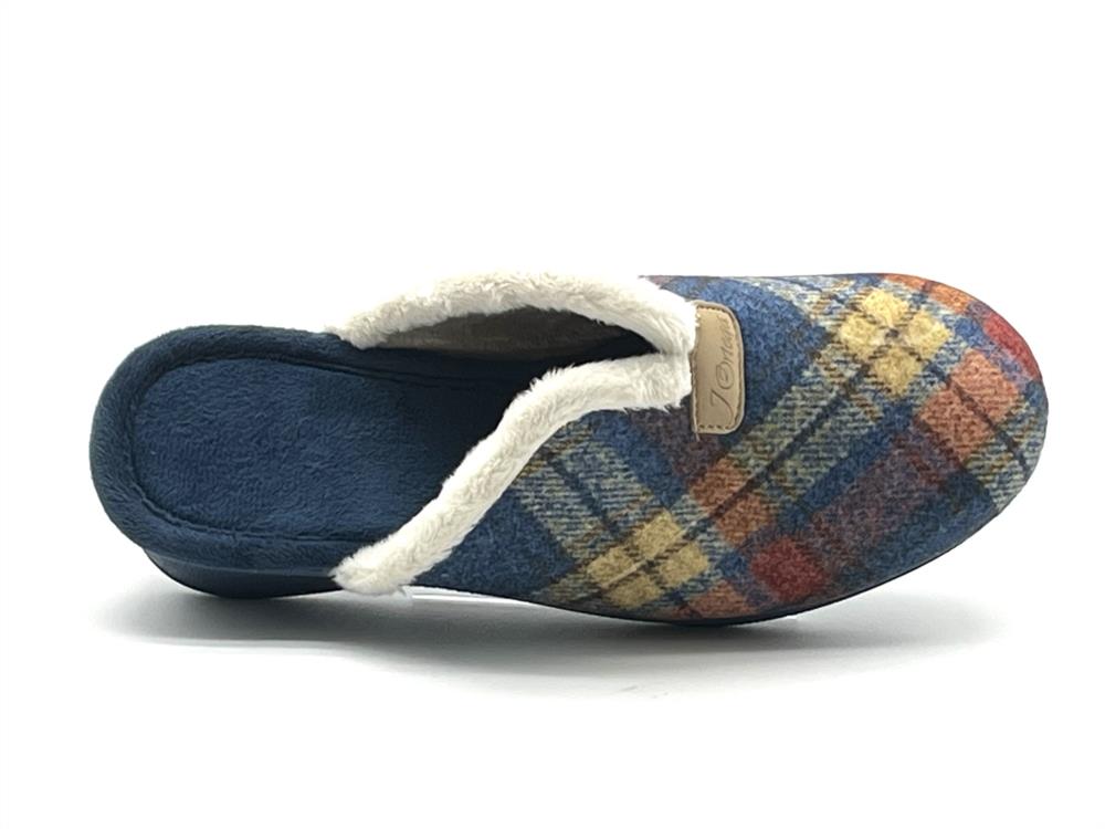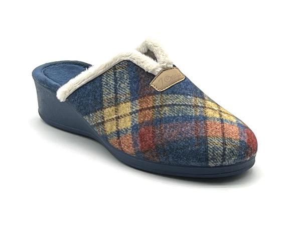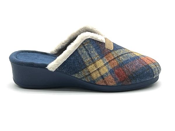 Zapatilla Zueco apertura cuadros azul 35/41 Anatómica-cuña 4,0cm